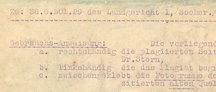 - Landgerichtsakte zu einem Plagiatsprozess (1929/30)