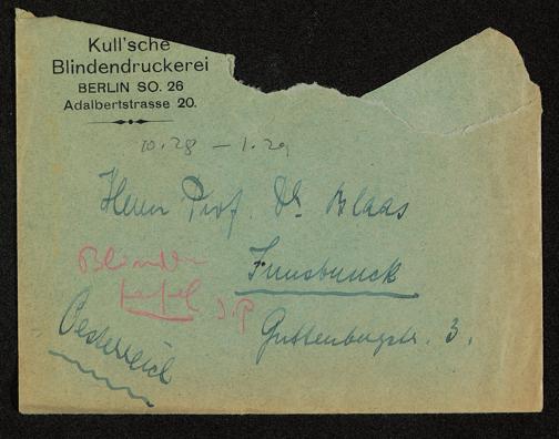 [Brief Kullsche Blindendruckerei an Josef Blaas]